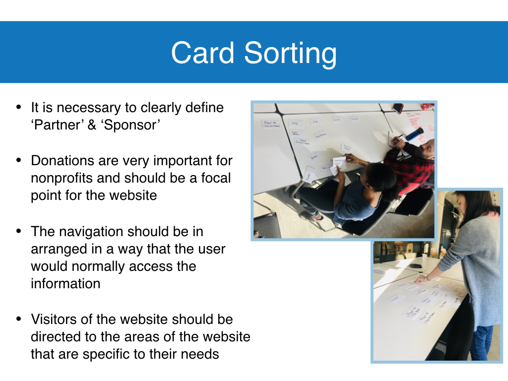 -Conducted the Card Sorting with a partner then drafted & defended initial designs for information architecture.